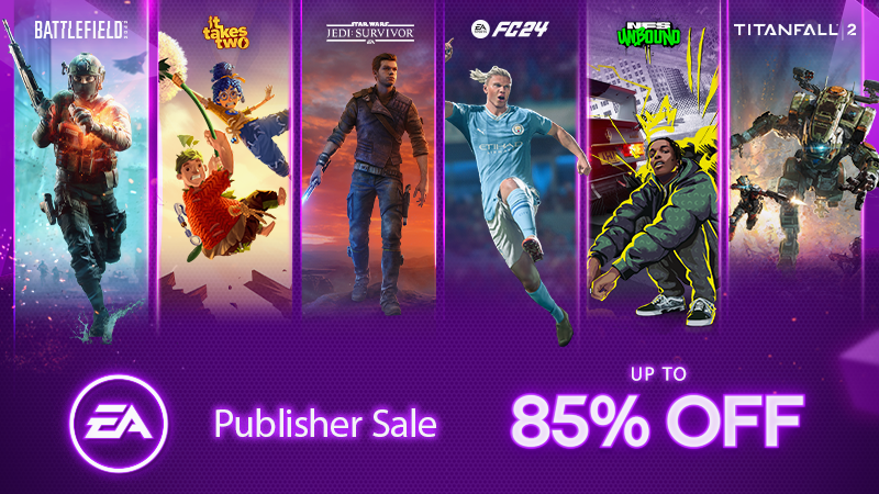 Whether you're ready for a little friendly competition or embark on an amazing adventure, the EA Publisher Sale gives you a chance to grab some of your favorite titles at huge savings. Get great deals on EA SPORTS FC™ 24, STAR WARS Jedi: Survivor™, Need for Speed™, Battlefield™, The Sims™, and more!